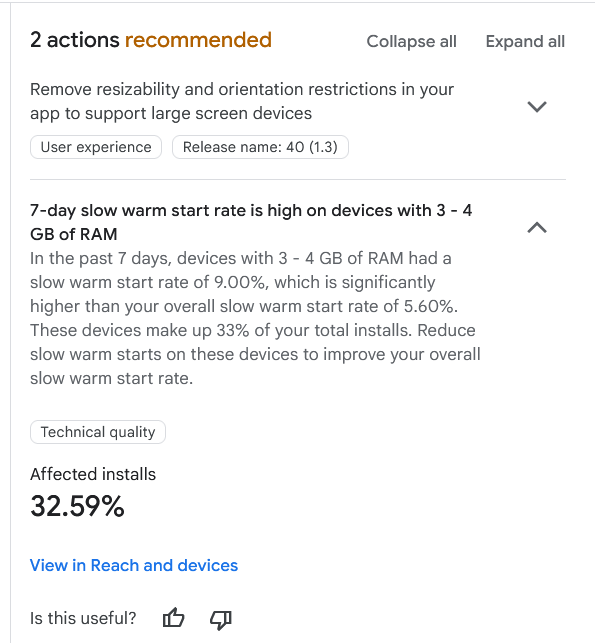 7-day slow warm start rate is high on devices with 3 - 4 GB of RAM