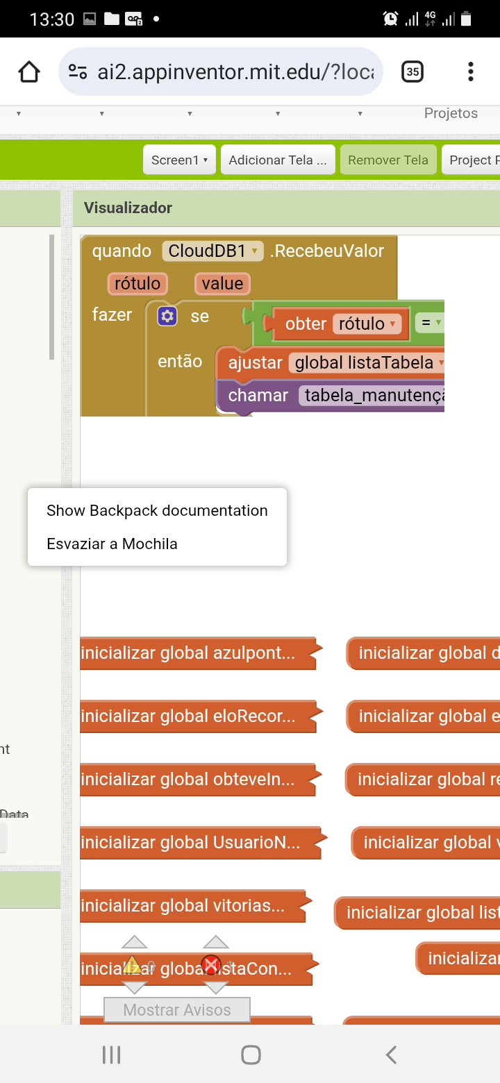 Ao clicar na mochila, os itens da mochila não são exibidos. Só aparece o primeiro item da mochila. E esse item aparece cortado, e se clicar nele, ele não cola no painel principal de blocos. Os outros itens não são mostrados.