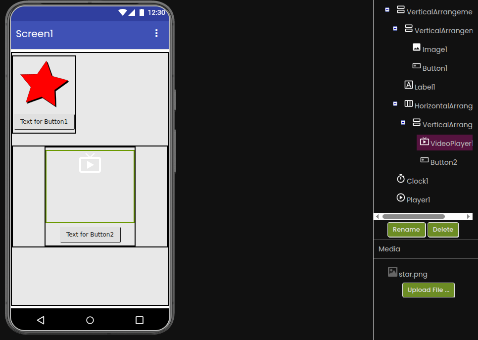 The HArrangment is orange, the VArrangement is green, the video player is black, you would need to do some sizing.