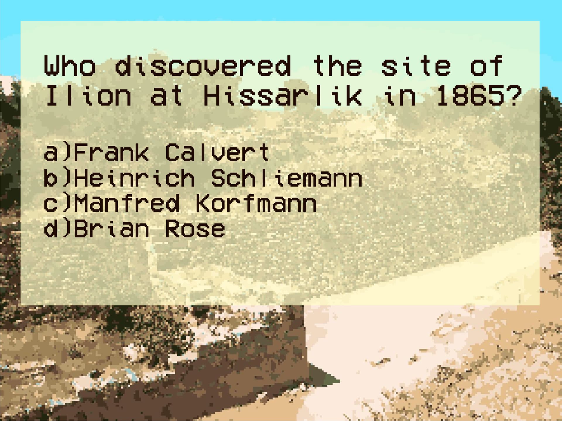 I am new at posting here so I hope I do it right. I am working on a quizz game for my archaeology students and I having an issue with set Screen BackgroundImage. For "artistic" reasons, the questions are displayed as the background image of the screen in which the game is running, and no issues with that: it chooses a random question from a list and displays it (1). My problem is that, after you answer the question, you can hear a little sound for right or wrong and a new background image with "correct" or "wrong" (2). The questions are transitioning smoothly, and the sounds are working perfectly, but for reasons I do not understand the background remains the same until the very last question before the game_over (which is a different screen).