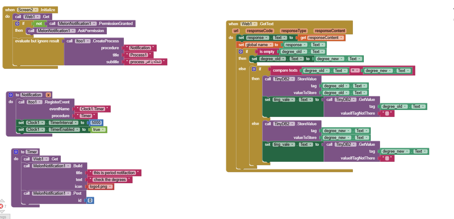 i will try to solve the crash problem but untill solving it ,, your blocks send notification with all response from web ,, all i want is when first data changed send notification and then store that in tiny db for example and testing in next hours that value with incoming if it changed send notification with that ,,