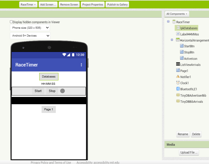I copied over from Screen1 the TinyDB instance that stores the bib number values for device tags.