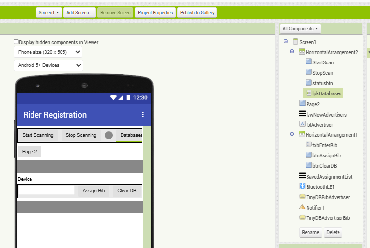 Tested quickly, but am at a race currently. working good. The next challenge for me is to now on page 2 to scan all the time when started, and not just a scan period. Also monitor the selected devices, and if they are not in the list anymore, it should be available to log their time again once they are in range. This is basically to be able to scan bibs doing laps.