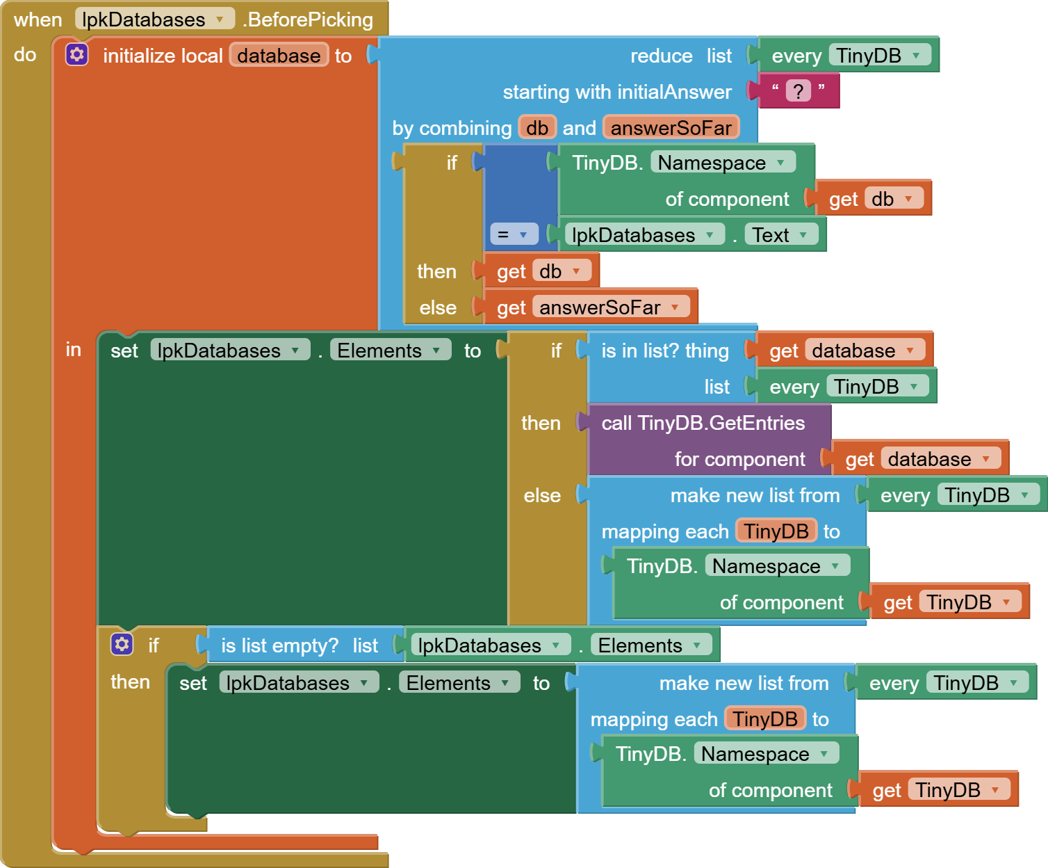Do that in both screens, where you fill the TinyDBs and where you do the lookups.