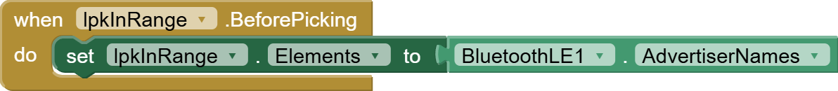 (I leave it to you to figure out how to keep those Device Found events triggering with incoming advertiser names, probably by adding a Clock Timer for that)
