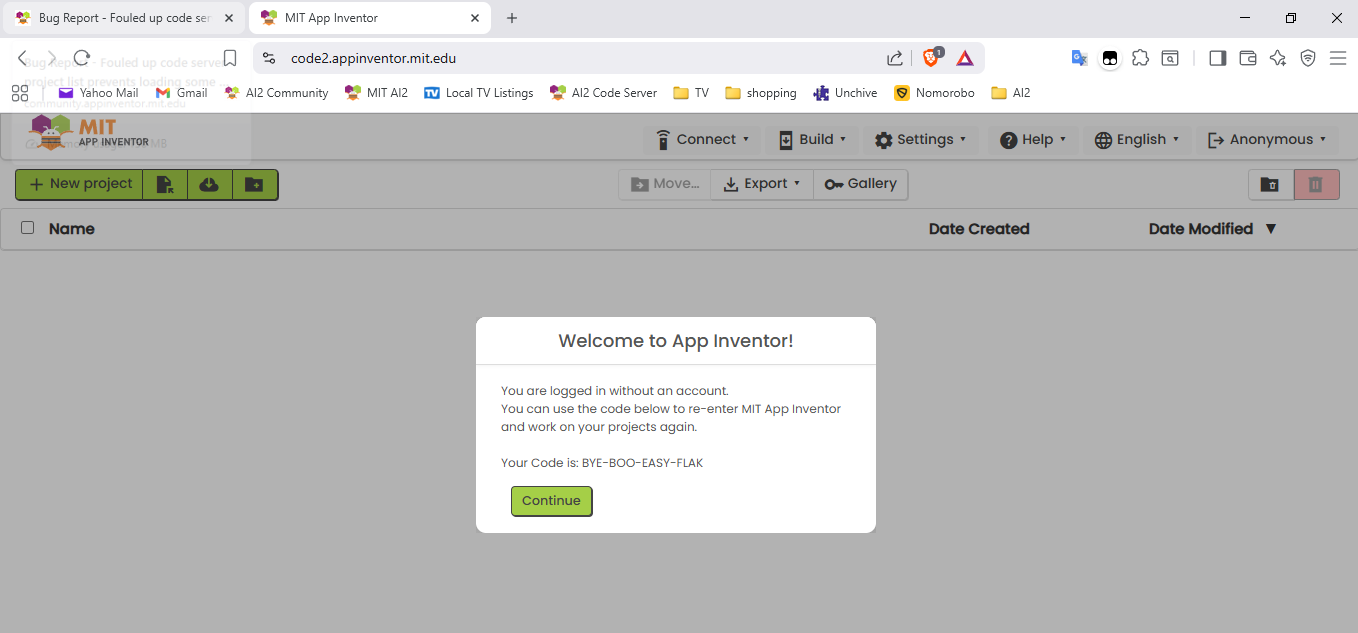 Note: If we move you, you will login the same way you do now, you will just see "code2.appinventor.mit.edu" in the browser bar.