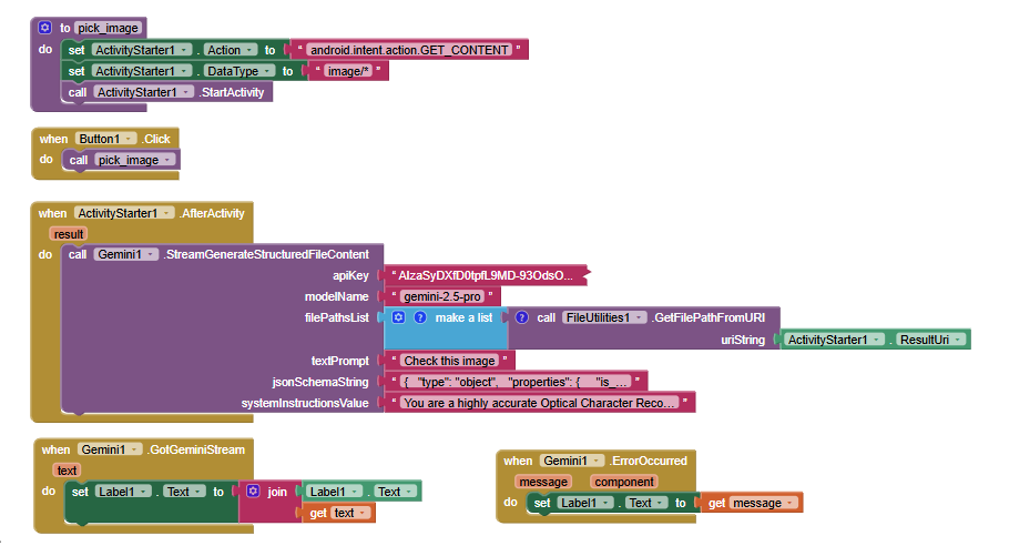 - Make the API Call: Use the Web component in App Inventor to send your instructions and user data (like an image or text) to the Gemini API.