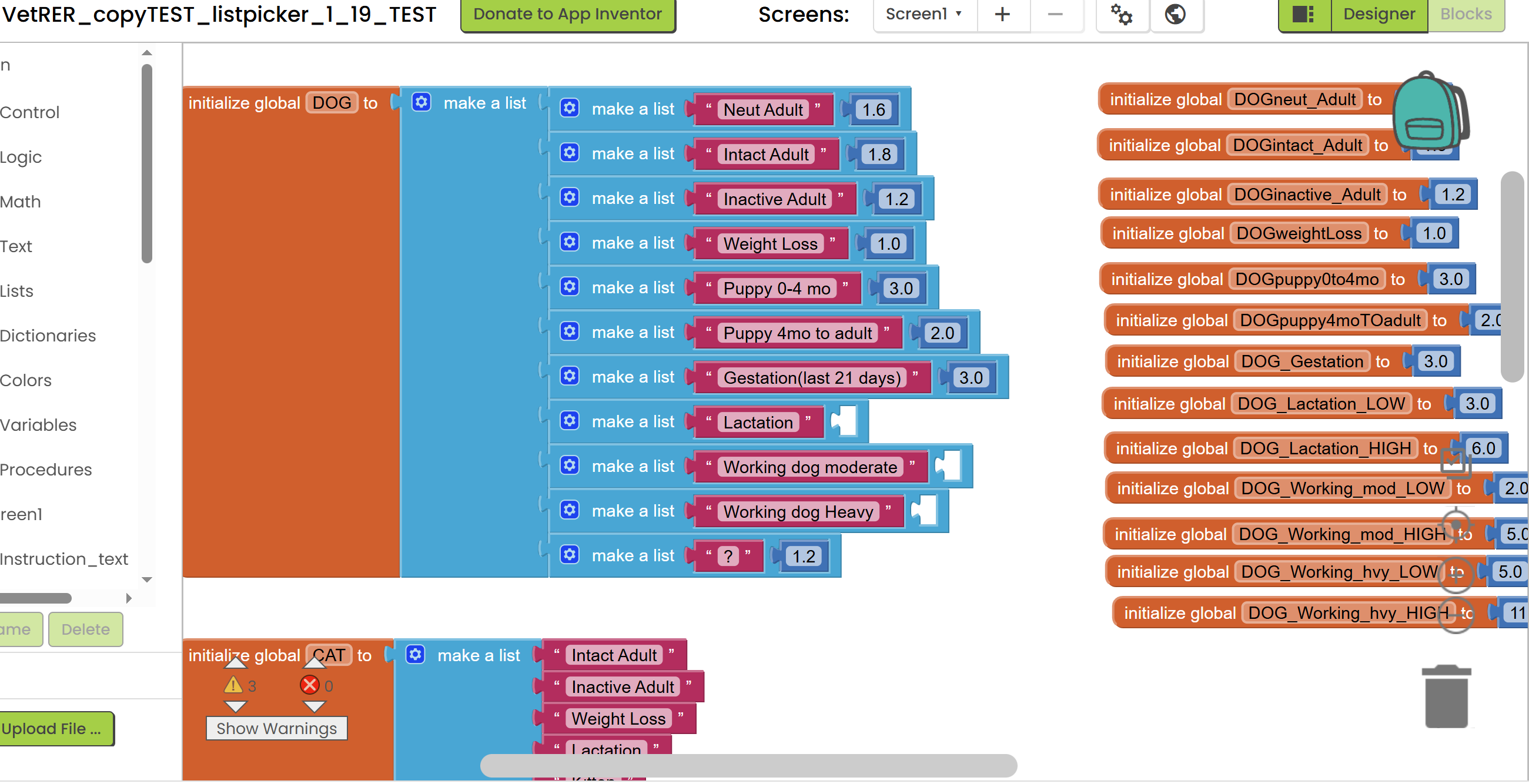 - When dog or cat is selected, it opens the selected factors in Listview. (I was excited when this worked out, and with the active button highlights!! I may add a reset to clear back to default later on)