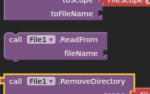 When I look for blocks on File1, I cannot find the purple "Call File1.ReadFromFile" block