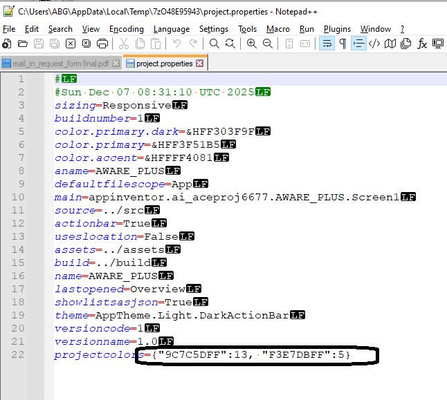 Edit the project properties in the aia using 7zip and notepad++ to reset the project colors at the end of the JSON.