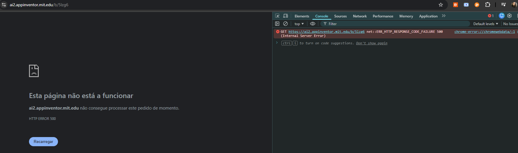 I don't know if it's my project or a instability with the platform, but for the past 6 hours or so, every time I try to download the APK it returns to me a 500 and if i try to publish to gallery, it just returns a 500 in the console and in the window just shows "Error sending project to the Gallery".