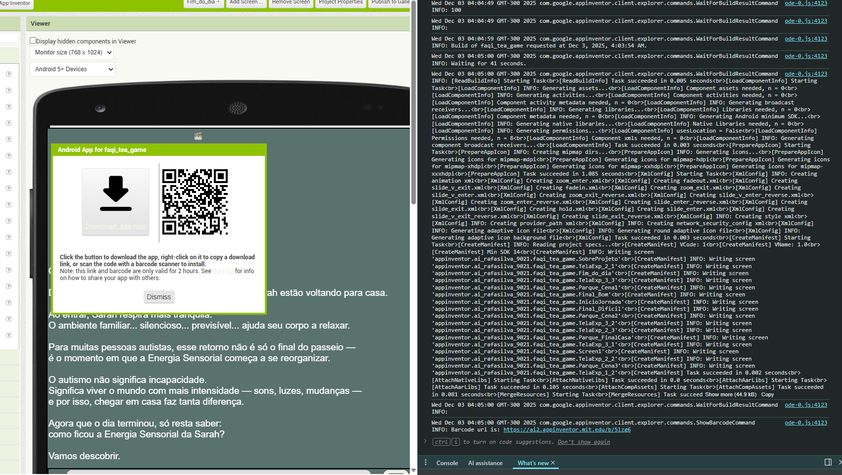 1st screen shot from the console when i try to publish to galery, the other from the download of the apk.