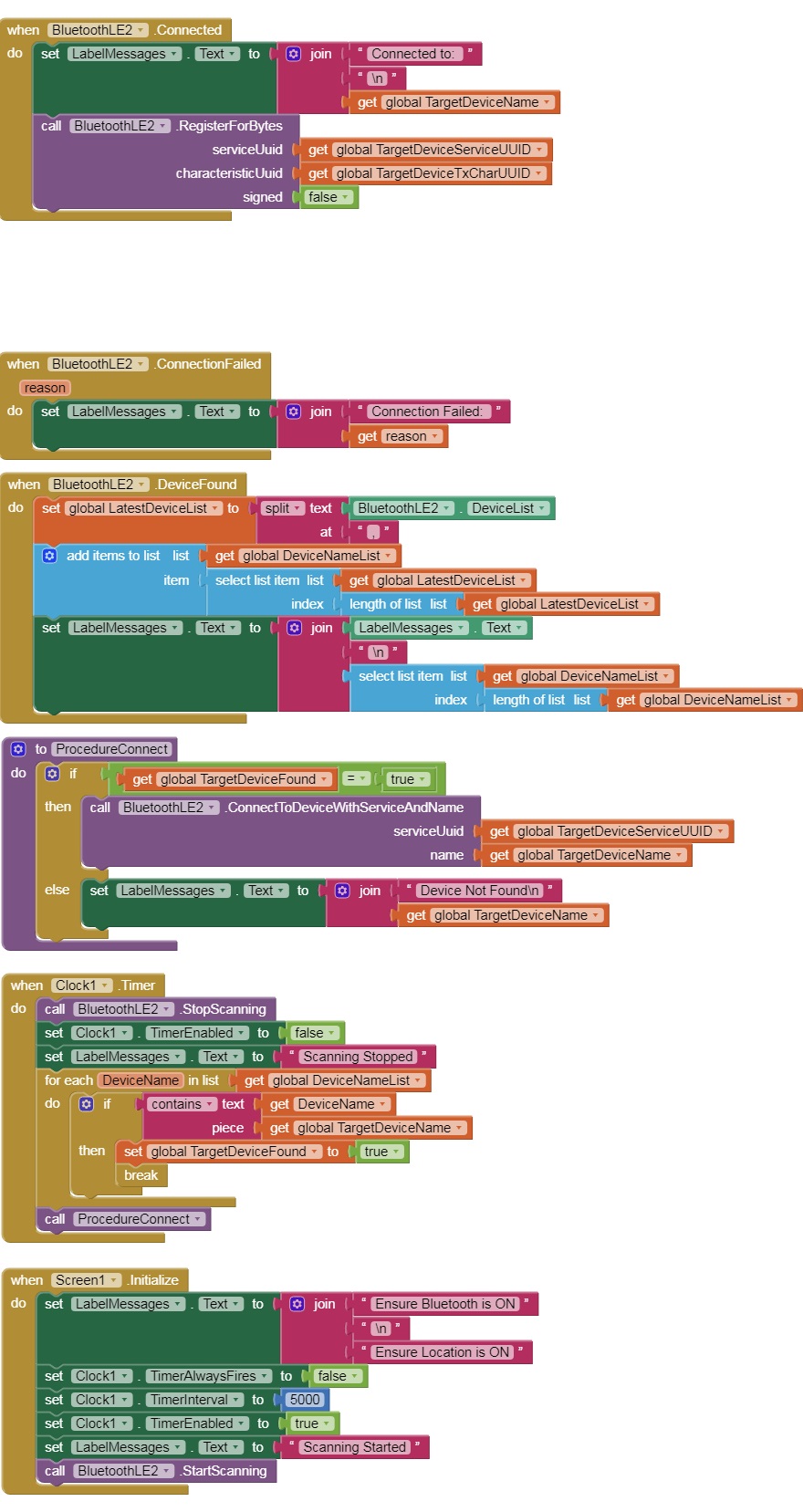 I loaded the latest extension earlier this week when I found Chris' code blocks (from 2022?). Based on your advice, I dragged another ble component (ble2) onto screen1 and replaced all the ble1 references with ble2.