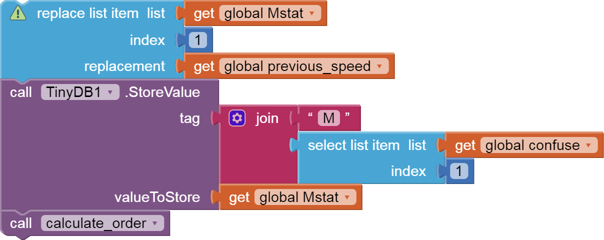 As said before, all the turn related lists and variables (except the turn list from the blocks uploaded before) are in the calculate order procedure, as seen below. Also, the not found results are like that so that there are no errors in this screen if you hadn't visited the other screens before. I guess I can change some of them because of other insurances I put in, but it would be tedious, not really that helpfull since I think the problem is from another source and finally it might create more unforeseen problems in instances of having not visited the previous screens. If it is any help I can upload the .aia file that now contains any changes done since the begining of this post.