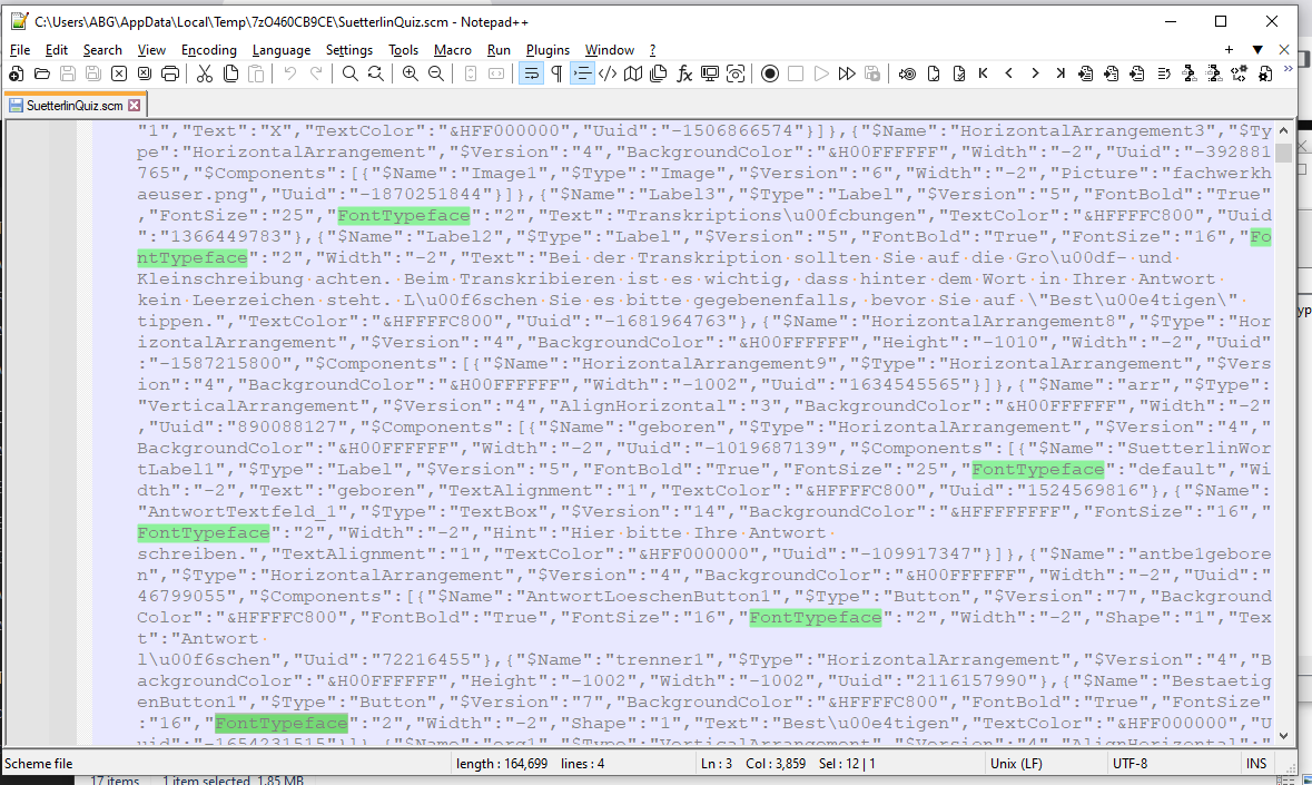 in this section, the third occurrence of FontTypeface has value "default" instead of "2".