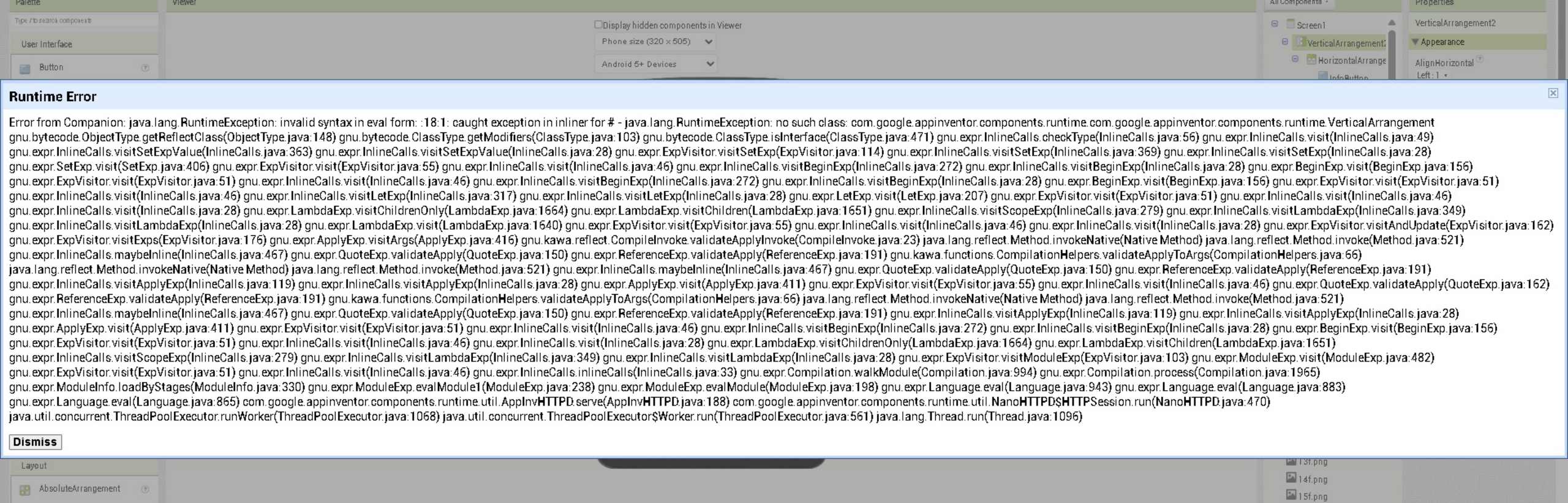 Hello, I updated the app and changed some thing, but still is the issue. Because of the changes, I upload from the relevant screens the block images and I upload a new AIA file. The problem is still, that the screen after installation on the device Android shows only a white screen without an error message. I tested, if the font is the reason for the problem, but with the font is everything alright, lilke it seems. In the runtime error, I saw a critical point with an arrangement, but I have no idea on which screen and what happened. Could someone please help? Thanks!