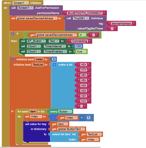 Hi as your supposed blocks worked fine. I made extra efforts to extend this code . I added a Bluetooth Button to enable BT and select devices and save address of last connected device. But when I press BT button, It does the same operation as other 8 buttons do (e.g., its image is changed ) and now I am stuck here.