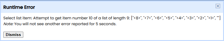 Below error snap is for reference purpose only actual error was popped when I used 8 items in the list .