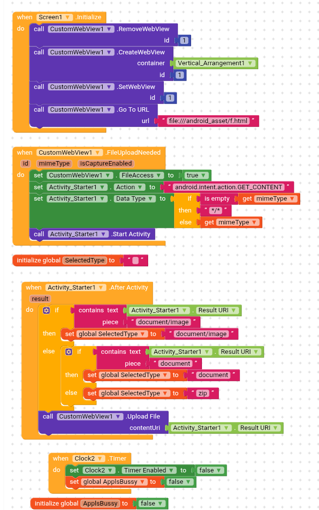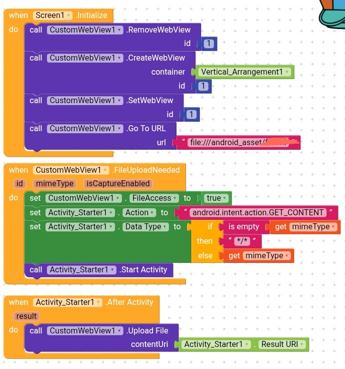It is my current blocks... I have imported WebViewExtra extension but not understand how to implement its block... Can you give me block image that I need to complete it?(post deleted by author)
