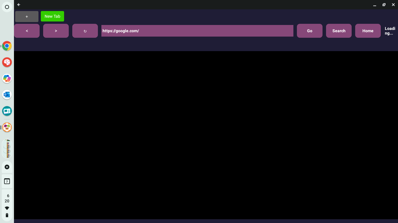 I have a Webviewer component and am trying to get it to show https://www.google.com/ or anything really but all it does is show a black screen. My code and the black screen is shown here. If it helps the webviewer isn't fully loading but I don't know how to fix it. Plus an error I keep getting is, java.lang.ArrayIndexOutOfBoundsException: length=1; index=-1 at java.util.ArrayList.get(ArrayList.java:439) at com.sunny.CustomWebView.CustomWebView.getIndex(Unknown Source:26) at com.sunny.CustomWebView.CustomWebView.access$200(Unknown Source:0) at com.sunny.CustomWebView.CustomWebView$ChromeClient.onProgressChanged(Unknown Source:4) at WV.Ia0.g(chromium-TrichromeWebViewGoogle.aab-stable-725815837:19) at WV.W7.handleMessage(chromium-TrichromeWebViewGoogle.aab-stable-725815837:236) at android.os.Handler.dispatchMessage(Handler.java:106) at android.os.Looper.loopOnce(Looper.java:201) at android.os.Looper.loop(Looper.java:288) at android.app.ActivityThread.main(ActivityThread.java:7950) at java.lang.reflect.Method.invoke(Native Method) at com.android.internal.os.RuntimeInit$MethodAndArgsCaller.run(RuntimeInit.java:548) at com.android.internal.os.ZygoteInit.main(ZygoteInit.java:936)