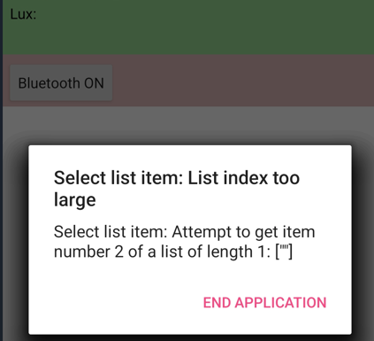 Lorsque je connecte le Bluetooth j’ai le message ci-joint qui apparait tant que je n’ai pas activé le Bluetooth (que je n’active que si besoin pour réduire la consommation) et je n’arrive à afficher que la luminosité et pas les autres valeurs. J’ai regardé et je ne vois pas le problème.