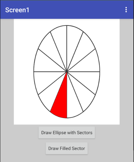 It is obvious, even to the naked eye, that the value of degrees for each sector is not 30 degrees. This would possibly be true if you had a circle, but here you have an ellipse. If you are drawing the ellipse and the lines on a canvas then you will know the endpoint x/y values for each line and the values required to draw the ellipse (an arc with a sweep of 360 degrees). Thus you should be able to draw an arc for any part of the ellipse.