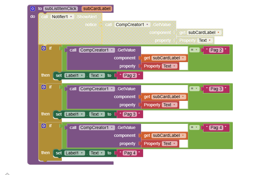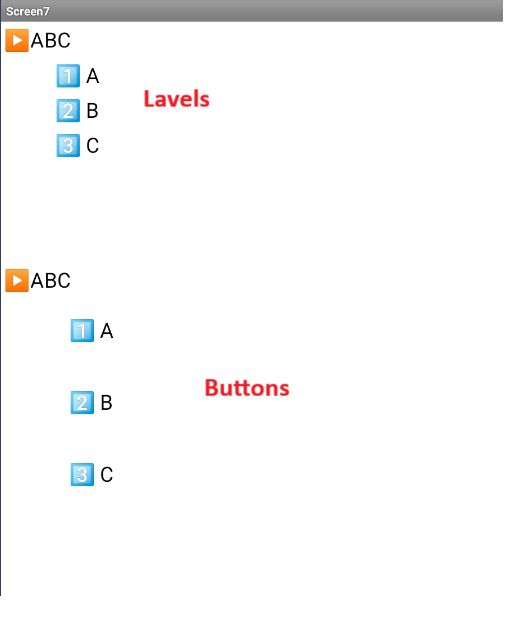 Perhaps you could use a ListView or you can display a background image on a Canvas where the Text or Buttons on the image are different colors. Click on a specific color, get the background color and use the color to determine what happens next.