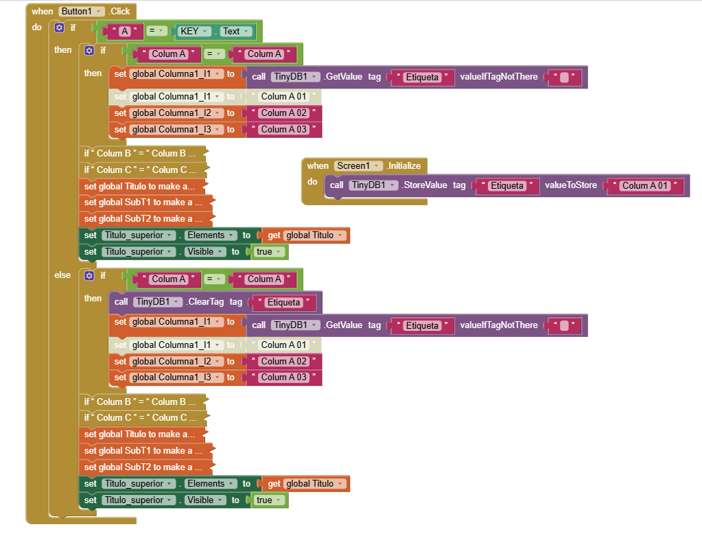 I saved a text (Colum A 01) in tinyDB at startup, which will be the first variable.