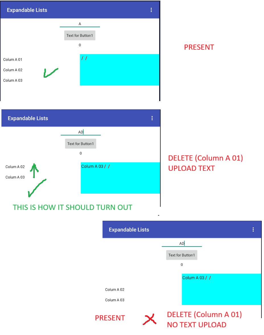 You are not setting the listviews correctly, you still leave the first element (empty) in the listview