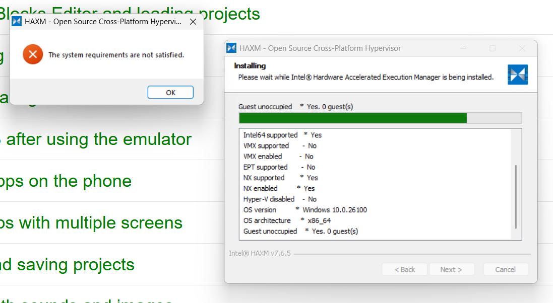 Hi, we are using windows 11, installing the message "The system requirements are not satisfied". We didn't see an an answer in the forums so i'm posting now. We get several no's on items but have not been able to get it to work. Any help is appreciated. We have a classroom waiting for us to get it working.