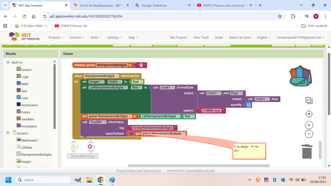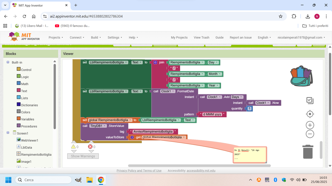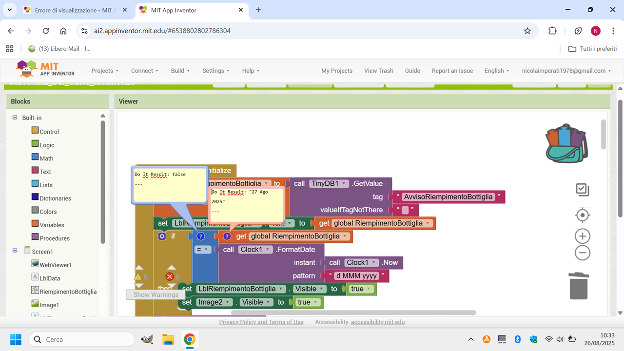 So you were adding 1 to the date twice, once when you set it up into TinyDB, then again when you did the comparison in Screen Initialize?