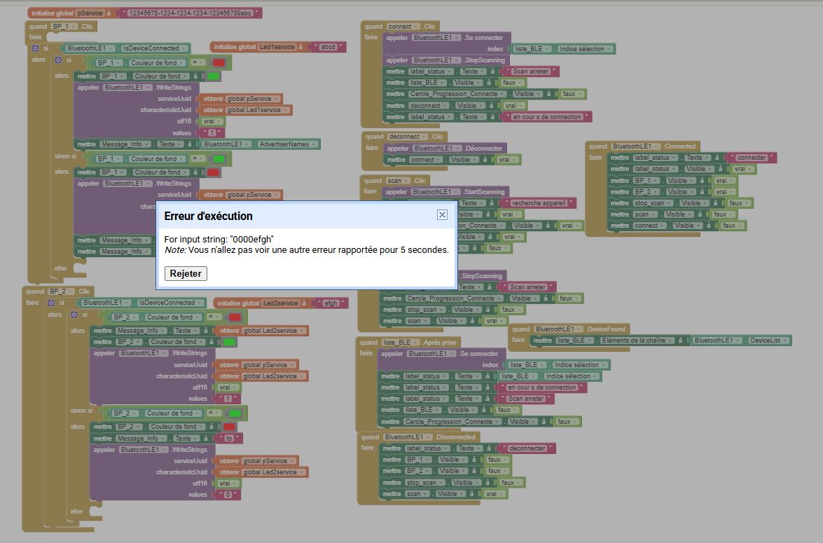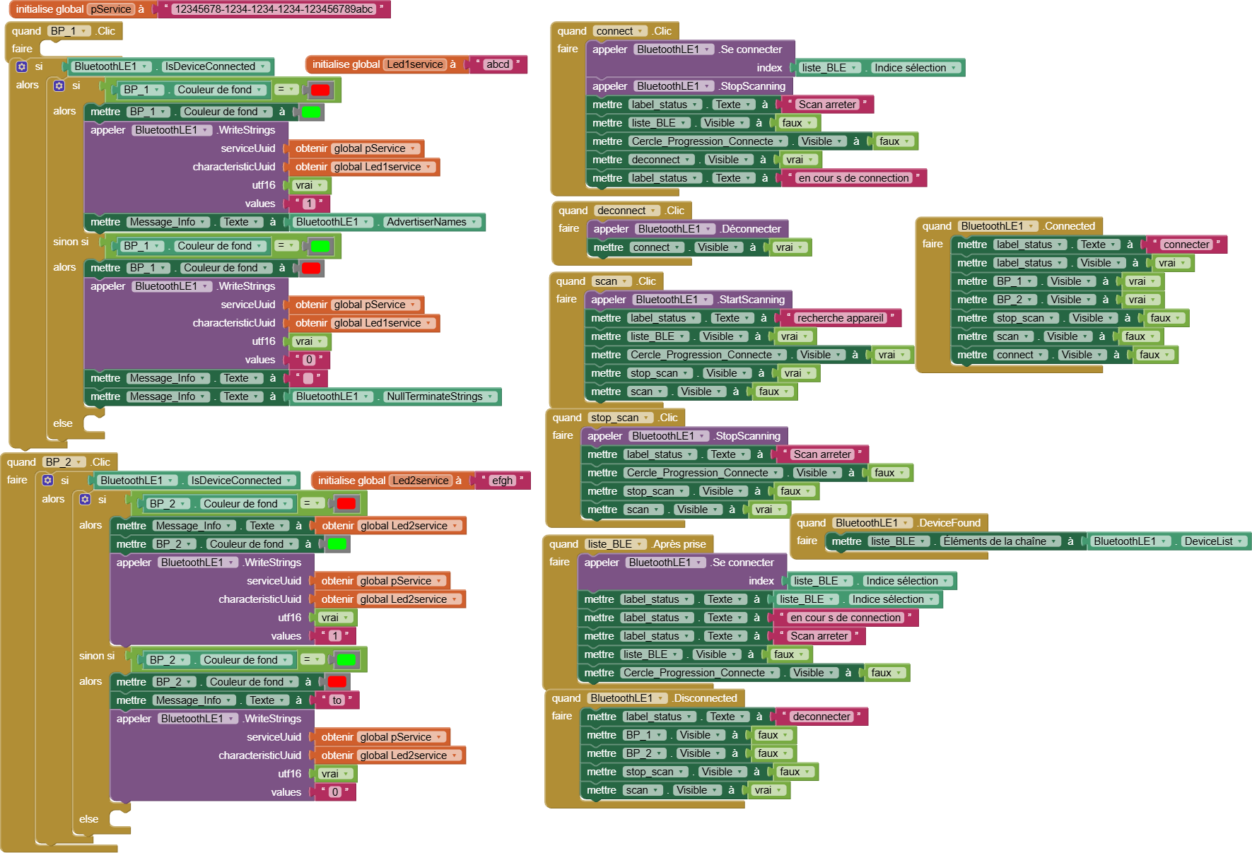 I designed blocks for two buttons that activate ESP32 LEDs via Bluetooth BLE.