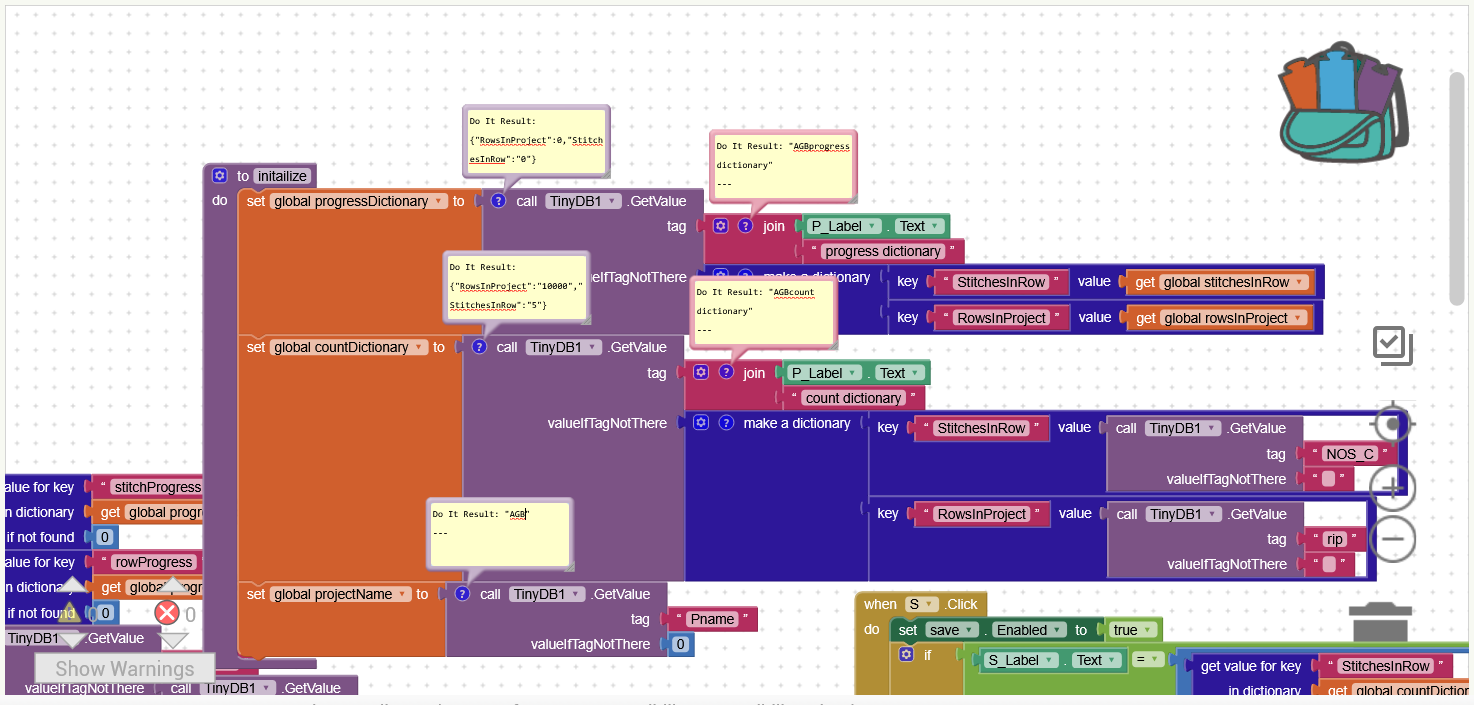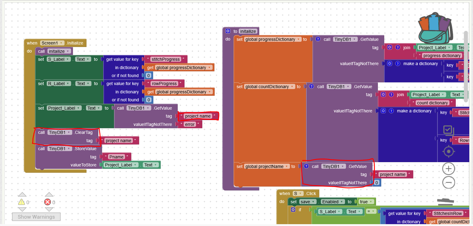 In this sample project, these two procedures are the only ones that know the TinyDB tag for current user. That eliminates lots of opportunities to use the wrong tag, through typo or forgetfulness.