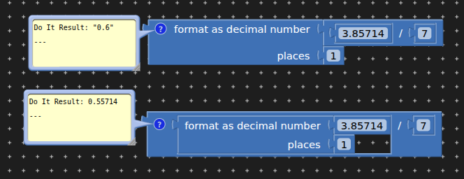 Since this afternoon, I haven't been able to figure out what I'm doing wrong. Basically, even though I use the "format as decimal number" function, the value isn't rounded to "3.9" but remains "3.85714" despite the fact that I specified that the decimal point should only be 1.