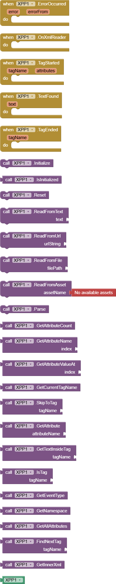 XPP is an MIT App Inventor extension (also works on Kodular, Niotron, and AndroidBuilder ..etc.) that provides a fast and lightweight way to parse XML data using the XmlPullParser API in Java.