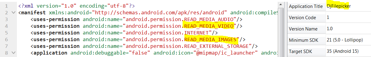 permissions are only available starting with Android 13 (API 33). But I don't know why they would be needed if a file is picked by the user.