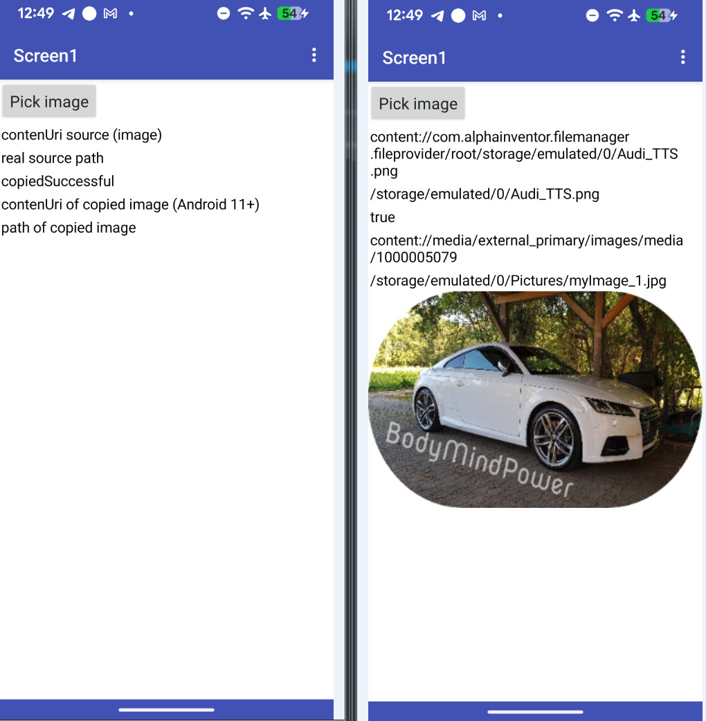 We should now understand how the ImagePicker works. When you make an image selection from the "gallery" with ImagePicker, it makes a copy of the file to shared storage (earlier android versions) or to the ASD (later android versions), and gives it a different file name. You can store up to 10 images in this way, try to store an 11th, and the 1st image will be removed. If you want to work on the imagePicker image, any modifications will be made to that copy, not the original.
