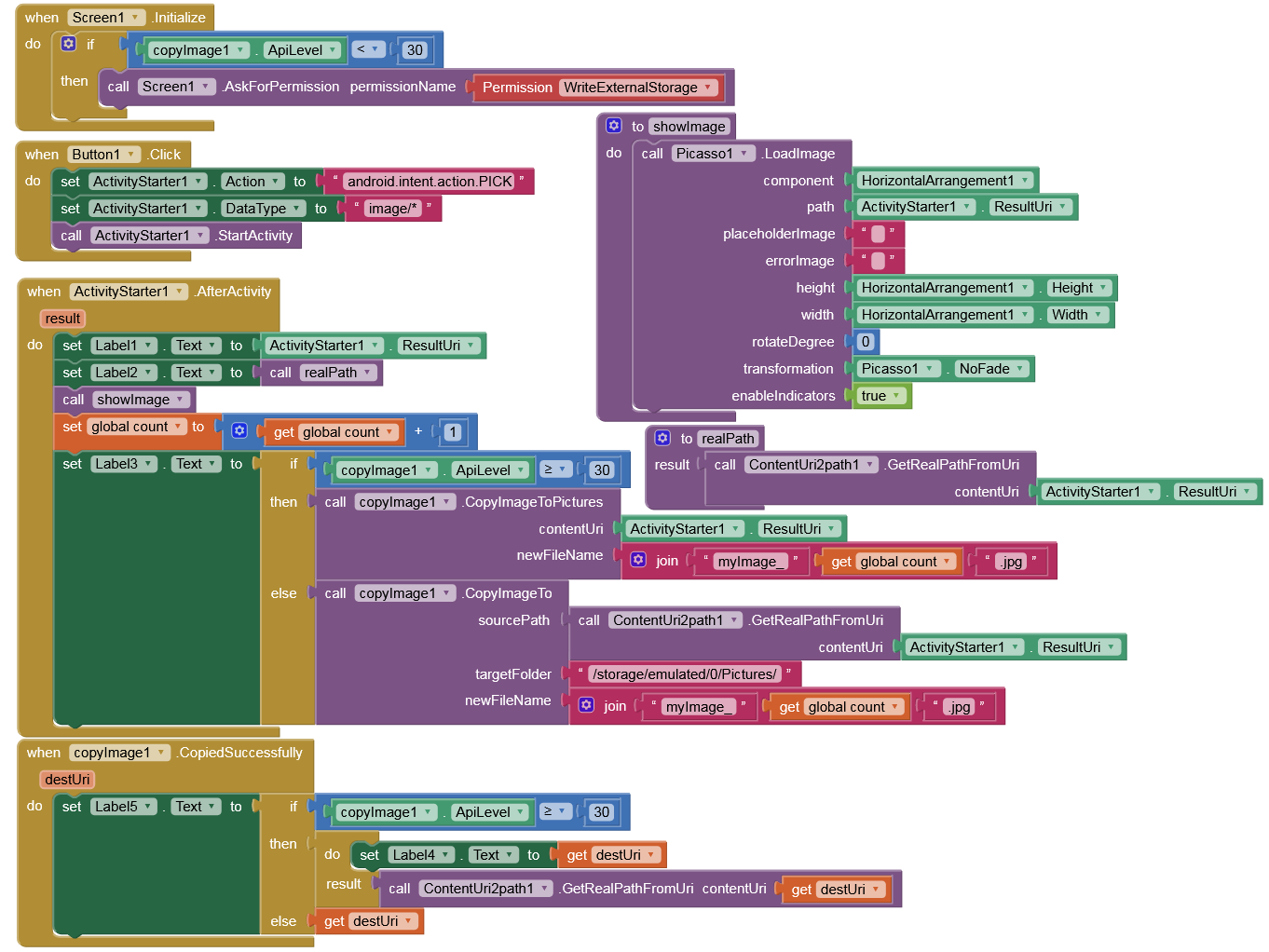 2. As you can see from the above, yes, the imagePicker makes a copy, and your blocks are working on that copy, not the original image, which will remain untouched.