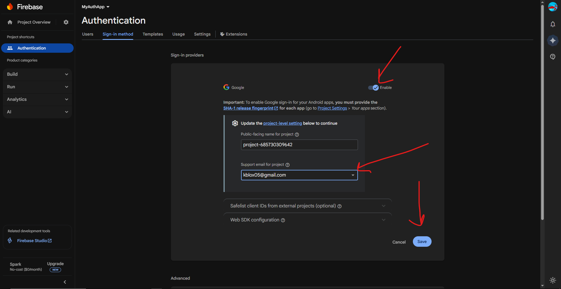 - Debug signing certificate SHA-1: Paste the SHA-1 you got in Step 4.