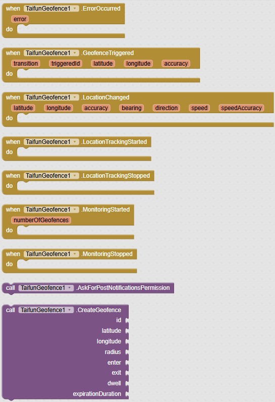 For documentation, download and details see here App Inventor Extensions: Geofence | Pura Vida Apps