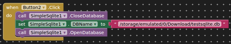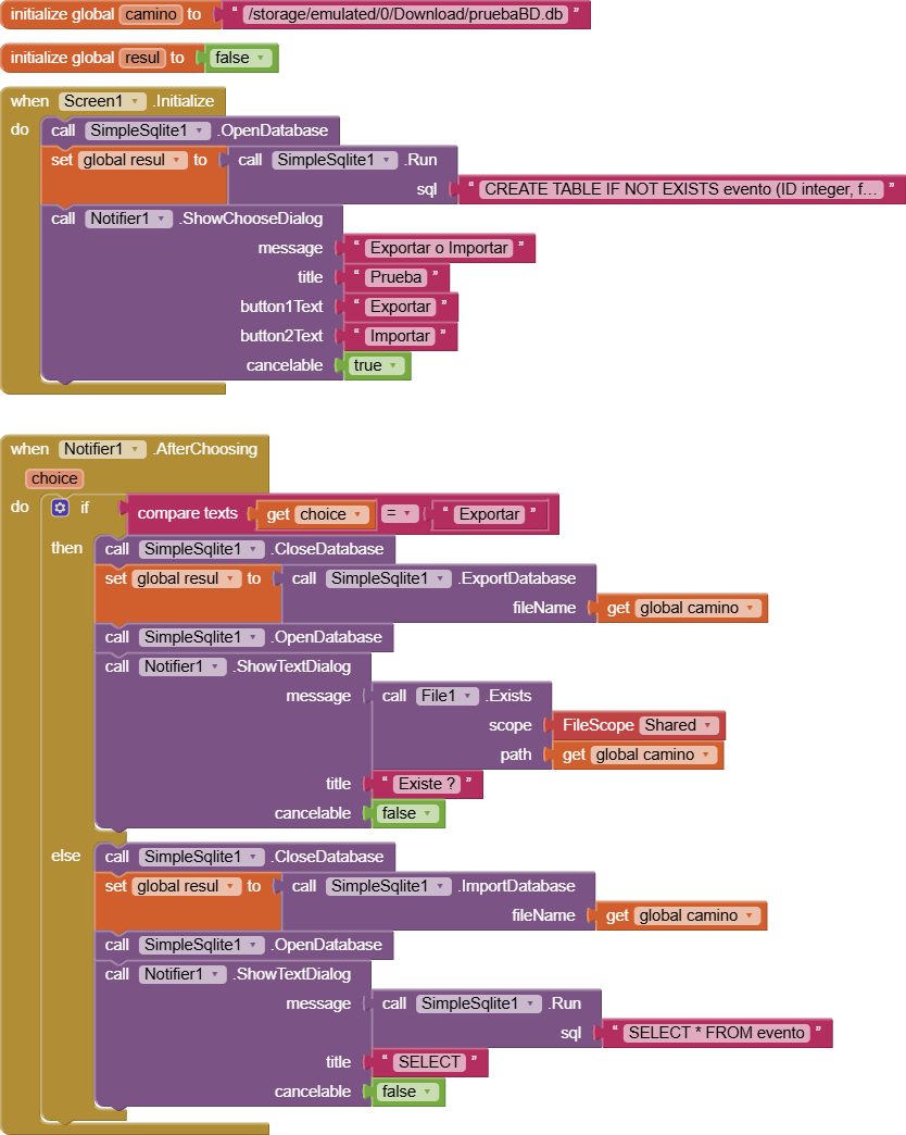 Utilizando la extensión SimpleSQLite no me funciona correctamente la .exportación (ExportDatabase ) / importación (ImportDatabase) hacia/ desde /storage/emulated/0/Download/alumbron.db