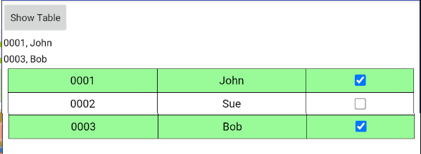 *I need to uncheck the box to clear the color of the selected row and remove it from the list. (The problem is that the same content is added when I check the box.)