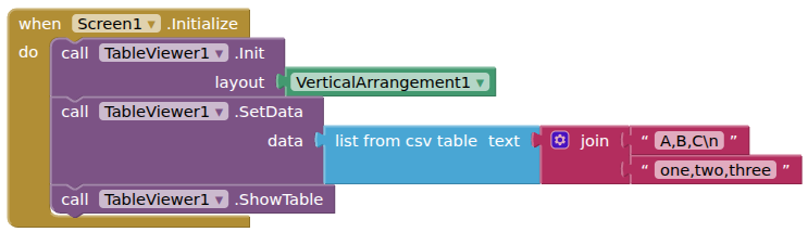 Blocks: Init the Tableviewer with your layout, set some data, show the table.