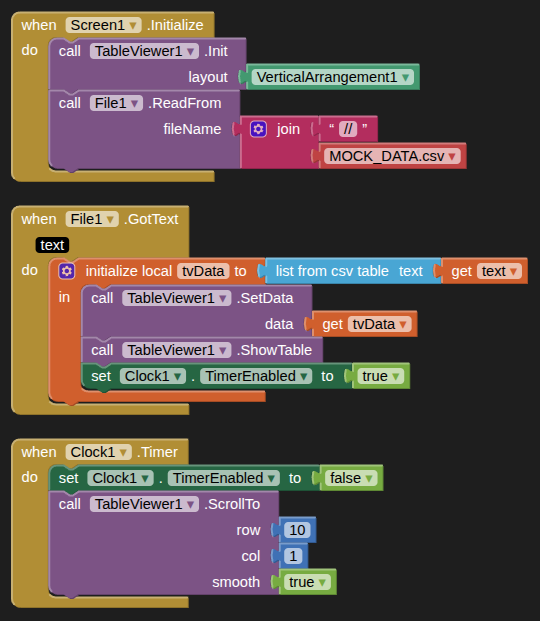 Some example blocks, use a clock timer to perform the scrollTo after the table has loaded