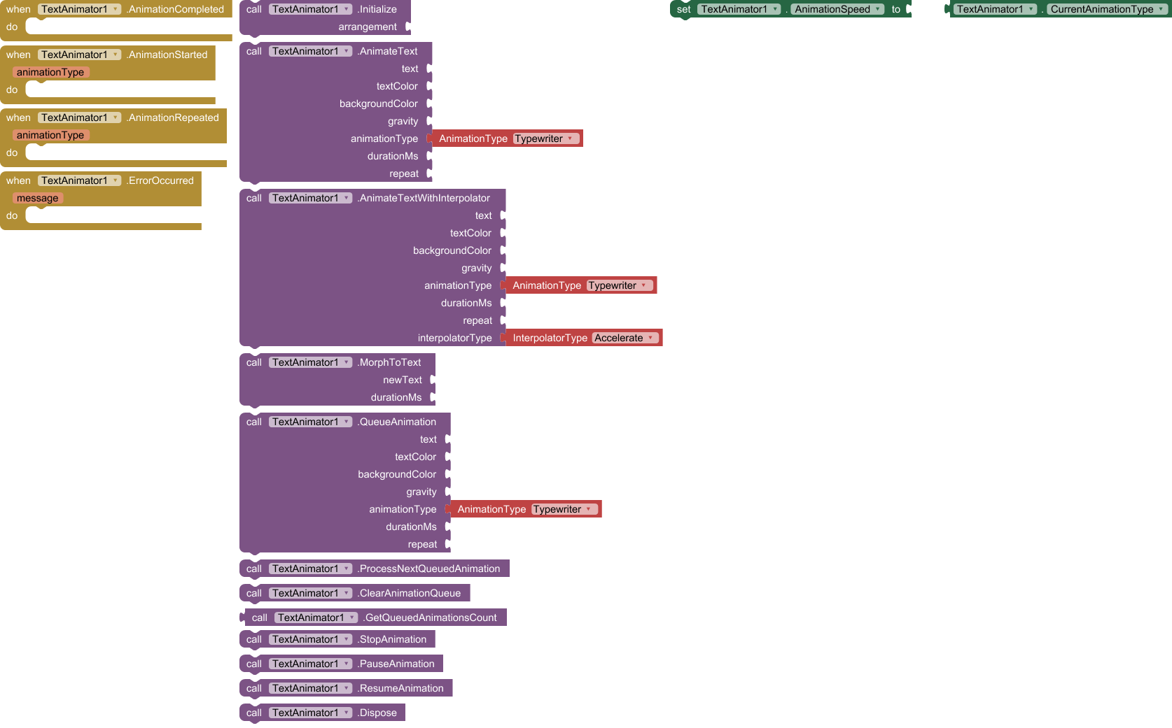 AnimationCompletedEvent: This is your most powerful tool for logic. TheAnimationCompletedevent block triggers after a non-repeating animation finishes. Use it to: