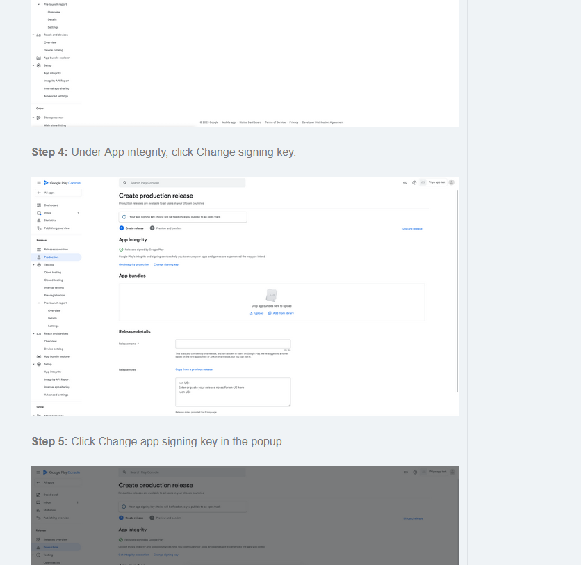 Return to Google Play → App Integrity → App Signing → Upload your certificate