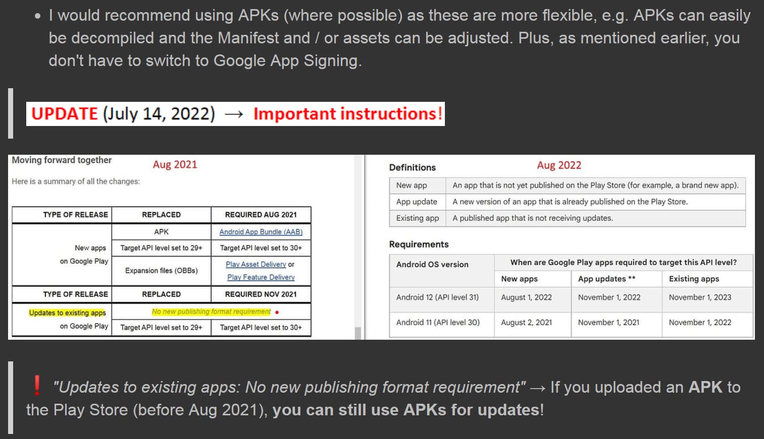 Furthermore, since August 2021, only AABs can be uploaded for new apps, from which device-specific APKs are then generated.