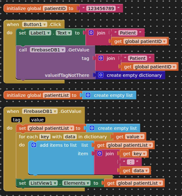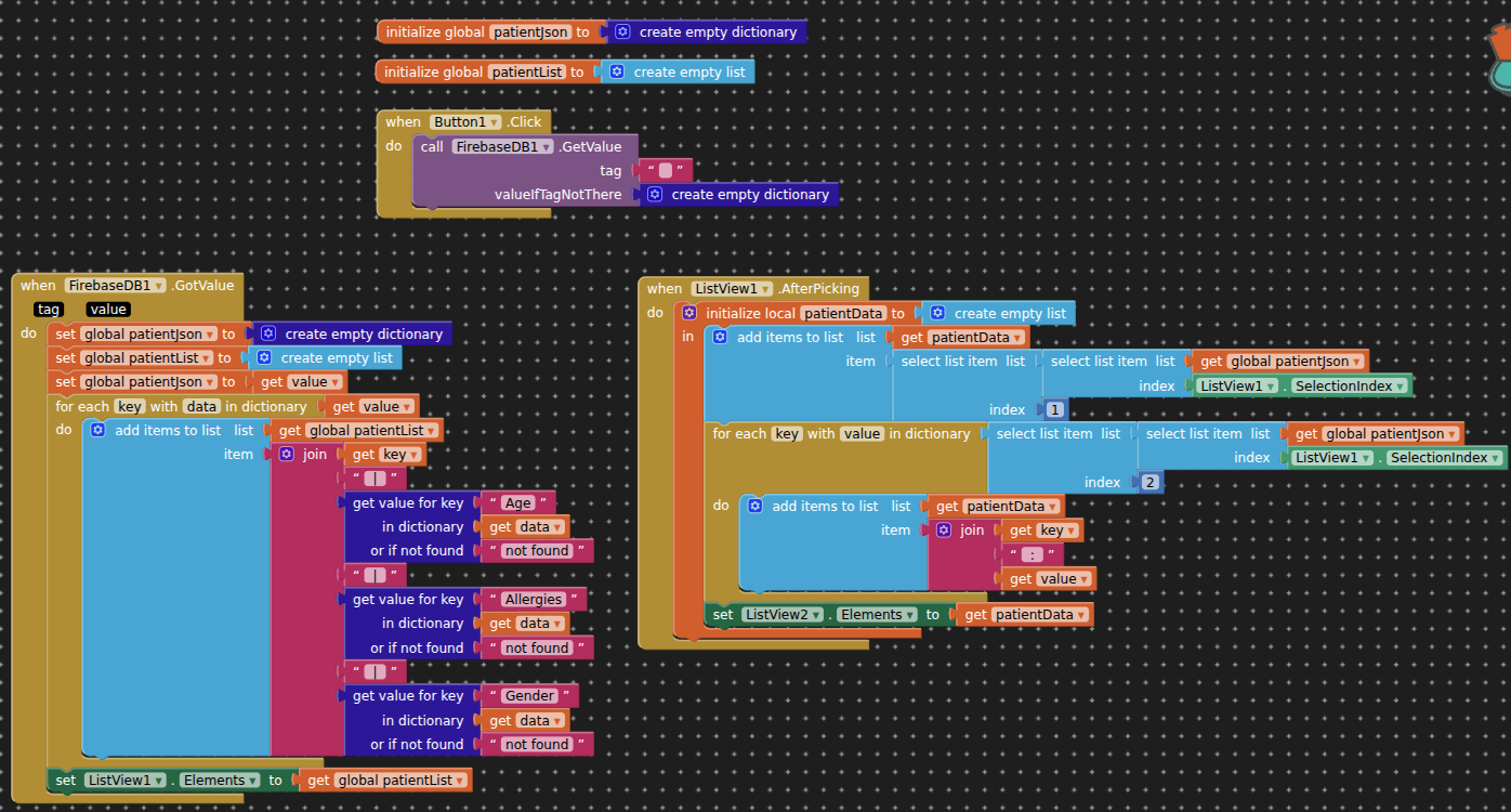 i think the proplem is when determining which patient data retrived. so could i retrive all data of the firebase in listview ? then i will select