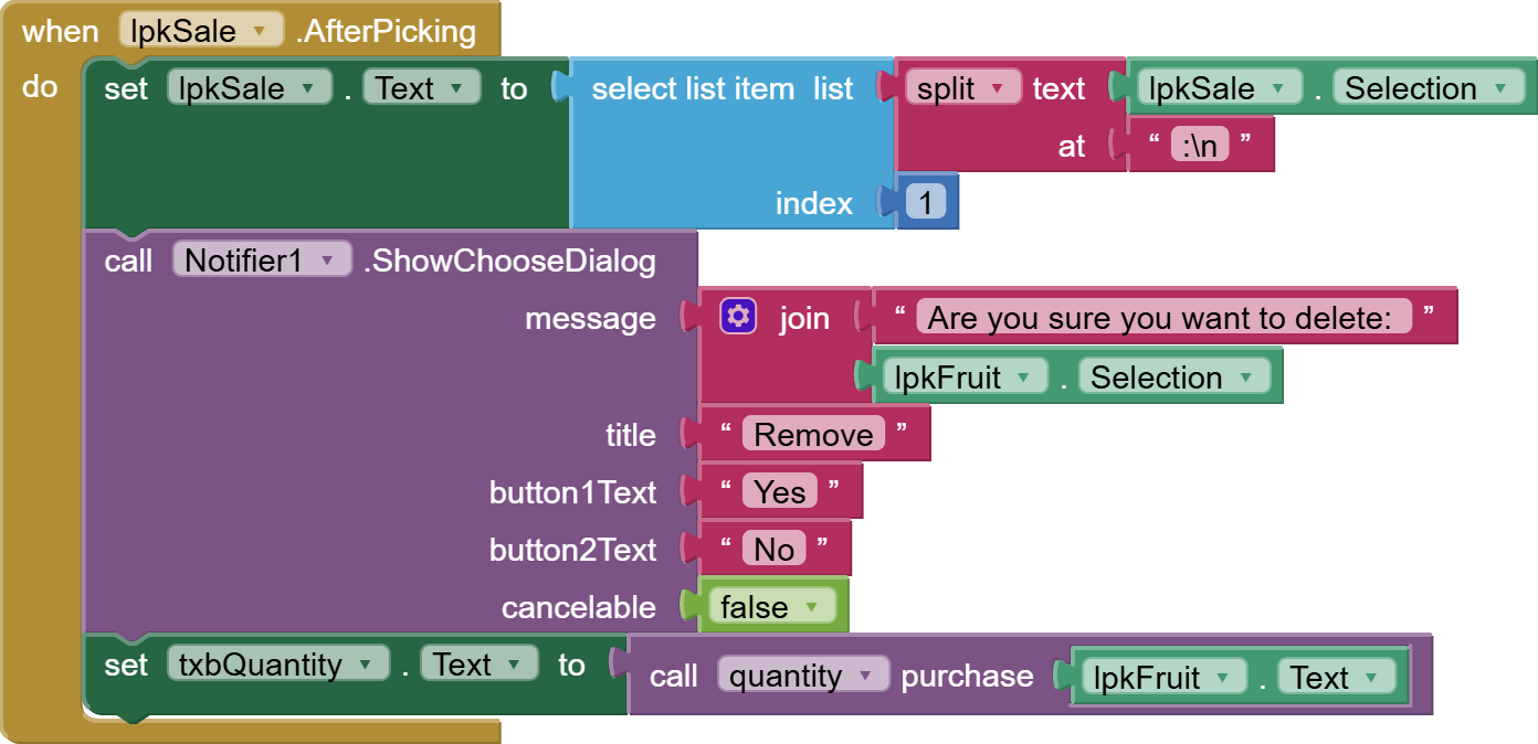 You need to have renamed Notifier1 to a specific named purpose, like ntfRemoveSaleItem, to express its sole function and allow for addition of other Notifiers later on, with other purposes.