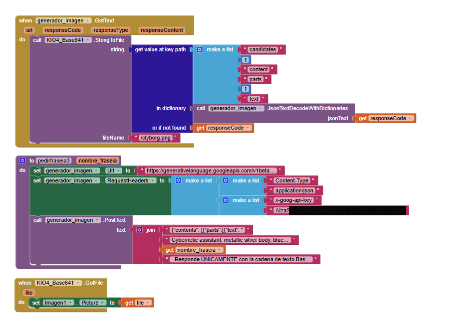 My app uses the Gemini API to send a prompt. I want the AI to return an image of "Clyborg" (my character) based on the user's input. Since Gemini returns a JSON response, I am trying to extract the Base64 string and convert it into a file using the KIO4_Base64 extension to display it in an Image component.